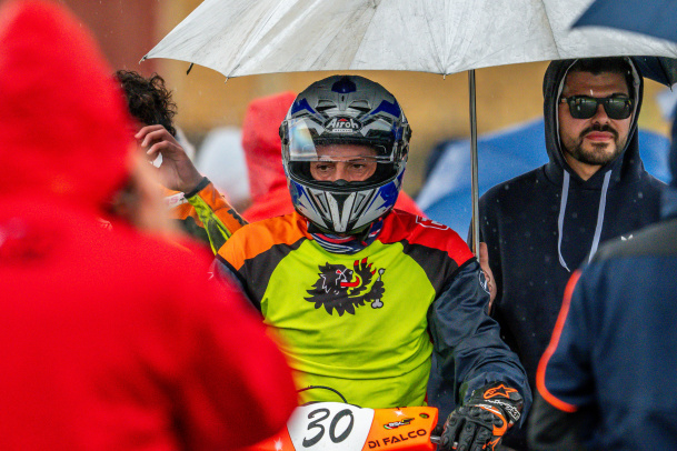La domenica del pilota di Caltanissetta, però, non registra imperfezioni. “Dalla quarta casella in griglia di partenza, con un buon feeling con il mezzo già da gara1. Con Luigi Strippoli, il mio preparatore, abbiamo trovato un buon assetto, da subito.” Anche se poi saranno Giuseppe e il suo scooter con il numero 30 a fare il resto. Nella prima frazione di gara, chiusa al terzo posto, dopo una lotta con Pietro Rizzo e Micol Sammito e poi una gestione della posizione conquistata, fin sotto bandiera. Sempre davanti.